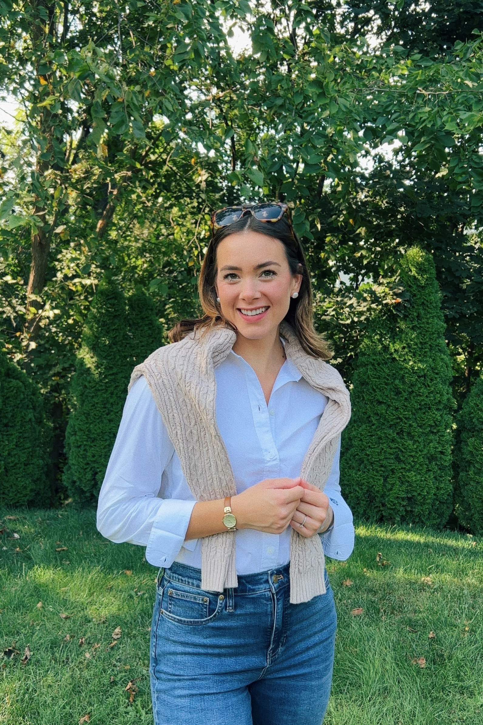 Less is more when it comes to accessories. I wear my pearl earrings or small good hoop earrings daily. I’ve also been wearing a simple gold necklace. I’ve found that just the accessories alone can really elevate an otherwise simple outfit. But don’t overdo it! Simple is better.