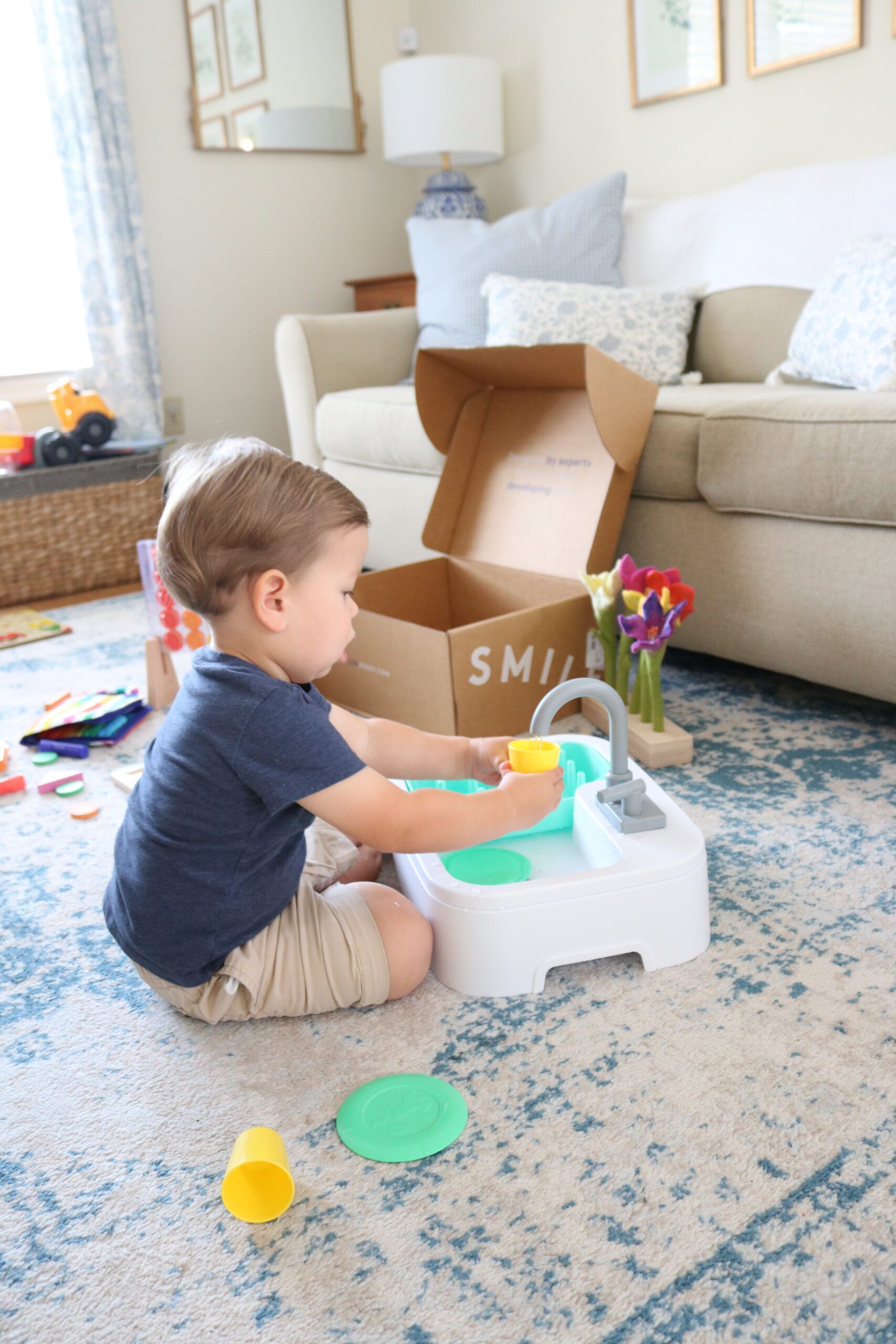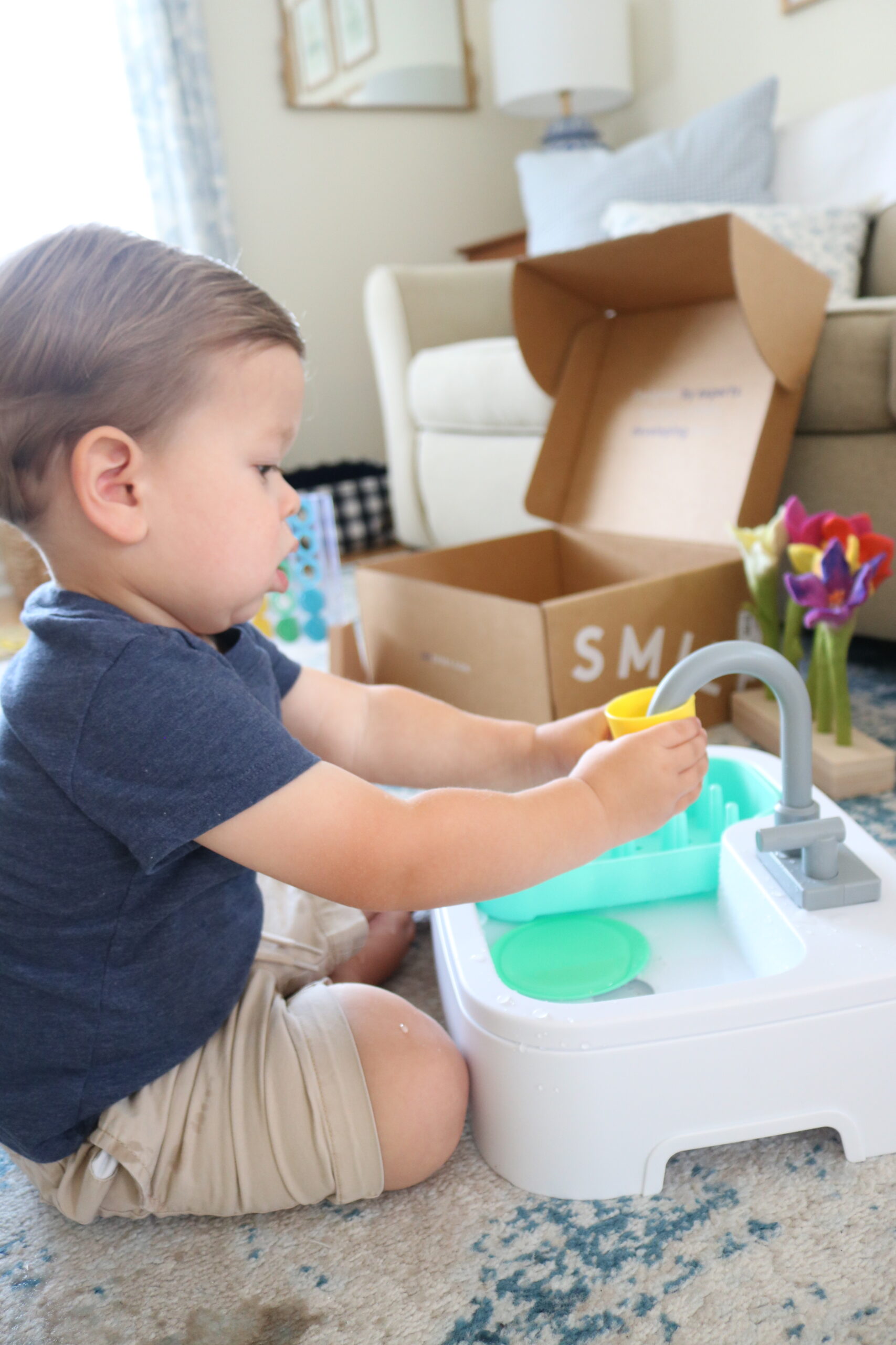 • Super Sustainable Sink With Bio-Based Cups & Plates – This is probably Teddy’s favorite thing in this play-kit. He LOVES water and if he had his way, he would be at the sink all day long. That’s obviously not possible, but with this play sink, you can run the water for HOURS. It’s battery operated and recycles the water so you’re not wasting water. Pure genius!