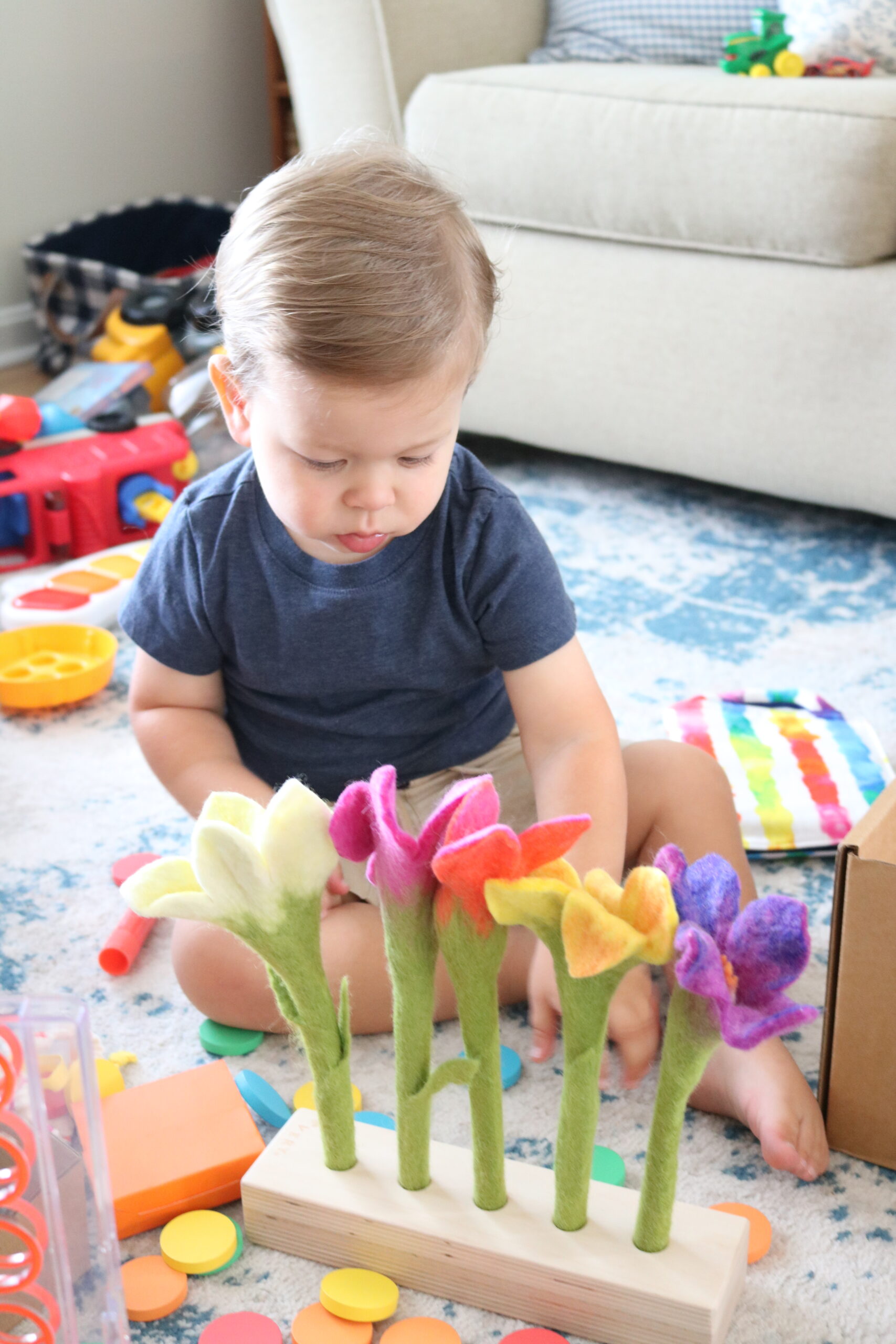 • Felt Flowers in a Row – Teddy loves to line up these felt flowers and bring me little bouquets!